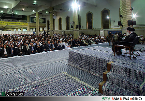 گروه سیاسی-رجانیوز: حضرت آیت الله خامنه ای رهبر معظم انقلاب اسلامی صبح امروز(دوشنبه) در دیدار علما، صاحبنظران و میهمانان اجلاس مجمع جهانی اهل بیت علیهم السلام و اجلاس اتحادیه رادیو تلویزیونهای اسلامی، مبارزه با نقشه های استکبار در منطقه را مصداق بارز جهاد فی سبیل الله خواندند و با اشاره به مقابله قاطع با «تلاش امریکا برای سوءاستفاده از نتایج مذاکرات هسته ای و نفوذ اقتصادی سیاسی و فرهنگی در ایران»، افزودند: نقشه نظام سلطه در منطقه بر دو پایه ایجاد اختلاف و نفوذ استوار است که باید با نقشه های صحیح هجومی و دفاعی به مبارزه هوشیارانه و بی وقفه با آن پرداخت.