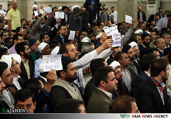 حضرت آیت الله خامنه ای در جمع بندی موضوع «ایجاد اختلاف» به عنوان پایه اول نقشه دشمن در منطقه اسلامی غرب آسیا، خاطرنشان کردند: تشدید اختلاف در دنیای اسلام ممنوع است و ما با هر رفتار و حرکتی که موجب ایجاد اختلاف شود حتی از جانب برخی گروههای شیعه مخالفیم و اهانت به مقدسات اهل سنت را محکوم می کنیم.