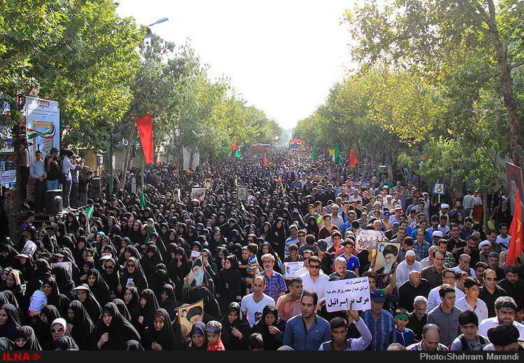 فریادهای ضد آمریکایی و استکبارستیزی از زبان مردم و تریبون ها قطع نمی شد، تا دنیا بداند اینجا اصفهان است، مهد رشادت و شهادت، اینجا اصفهان است و قلب مردمش مملو از کینه آمریکا و اسرائیل و ایادیشان.