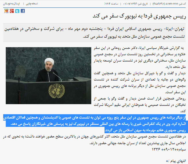 این در حالی است که پیش از این خبرگزاری رسمی دولت (ایرنا) از ۵ روزه بودن سفر رییس جمهور خبر داده بود و با این اوصاف، به نظر می رسد عملا بعد از سخنرانی آقای روحانی در سازمان ملل، بازگشت وی از آمریکا مصادف با همان روز پنجم سفرش خواهد شد و این به معنای آن است که عملا بازگشت رییس جمهور بر اساس برنامه قبلی بوده و هیچ ارتباطی با حادثه منا ندارد و حکم نذر کردن روغن ریخته بر زمین برای امام زاده است چرا که اگر قرار بود در راستای فاجعه آل سعود اقدامی از سوی رییس جمهور صورت بگیرد بهتر بود ایشان همان روز اول یا نهایتا دوم و قبل از ایراد سخنرانی در سازمان ملل به ترک خاک آمریکا اقدام می کرد تا با این کار، توجه جهانیان را نیز بیش از پیش به این فاجعه انسانی جلب کند.
