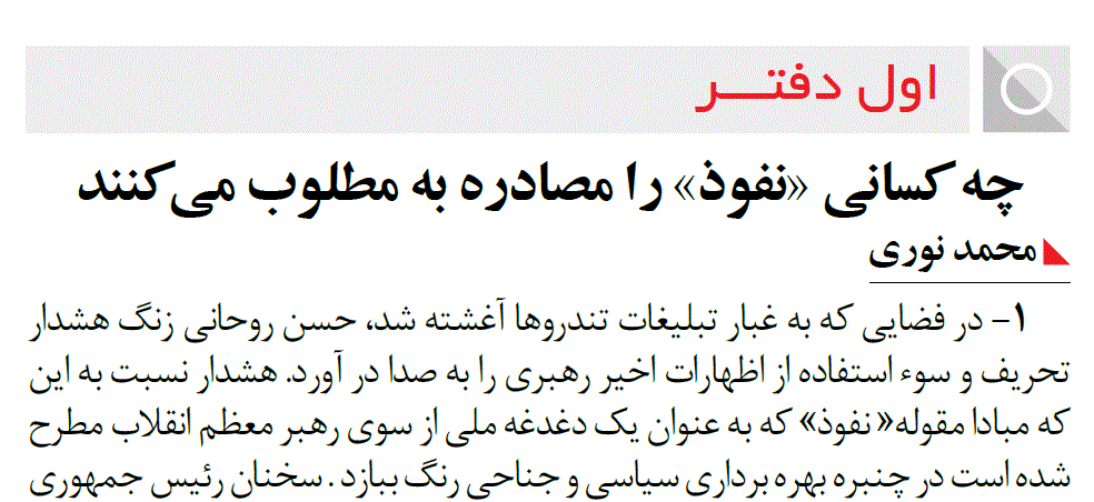 «دلنگرانى رئیس جمهور درآخرین سـخنرانى از همین بود . اگرقراراست همه مصداق هاى نفوذپذیرى را درمیان حامیان دولت واصلاح طلبان جستوجوکرد و مشخصا روزنامهنگاران را در این وانفساى کمبود روزنامه خوان هدف دشمنان براى نفوذ دانسـت، گام در بیراهه گذاشـتن اسـت.مگر اصلاح طلب ان در مراکز حساس و مهم مملکتى حضوردارند که بتوانن دراثرنفوذ اقدام موثرى انجام دهند؟».
