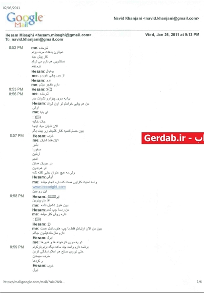 اسناد زیر یکی از چتهای این فعال به اصطلاح حقوق بشری با متهم متواری حسام میثاقی است.