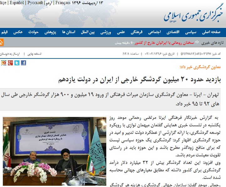 ا- مبتنی بر ادعای مرتضی رحمانی معاون سازمان گردشگری از سال 92 تا 95 19 میلیون و 900 هزار گردشگر خارجی وارد کشور شده است. به گفته رحمانی این آمار بر مبنای معیارهای جهانی بوده که مبتنی بر آن توریست کسی است که تنها 24 ساعت در یک کشور حضور پیدا کند. لذا ادعای عدم ورود گردشگر توسط روحانی و جهانگیری در تناقض با صحبتهای مسئول این امر در کشور قرار دارد که با این اوصاف از دو حالت خارج نیست. یا روحانی و جهانگیری اشتباه کردهاند و یا سازمان گردشگری کل کشور.