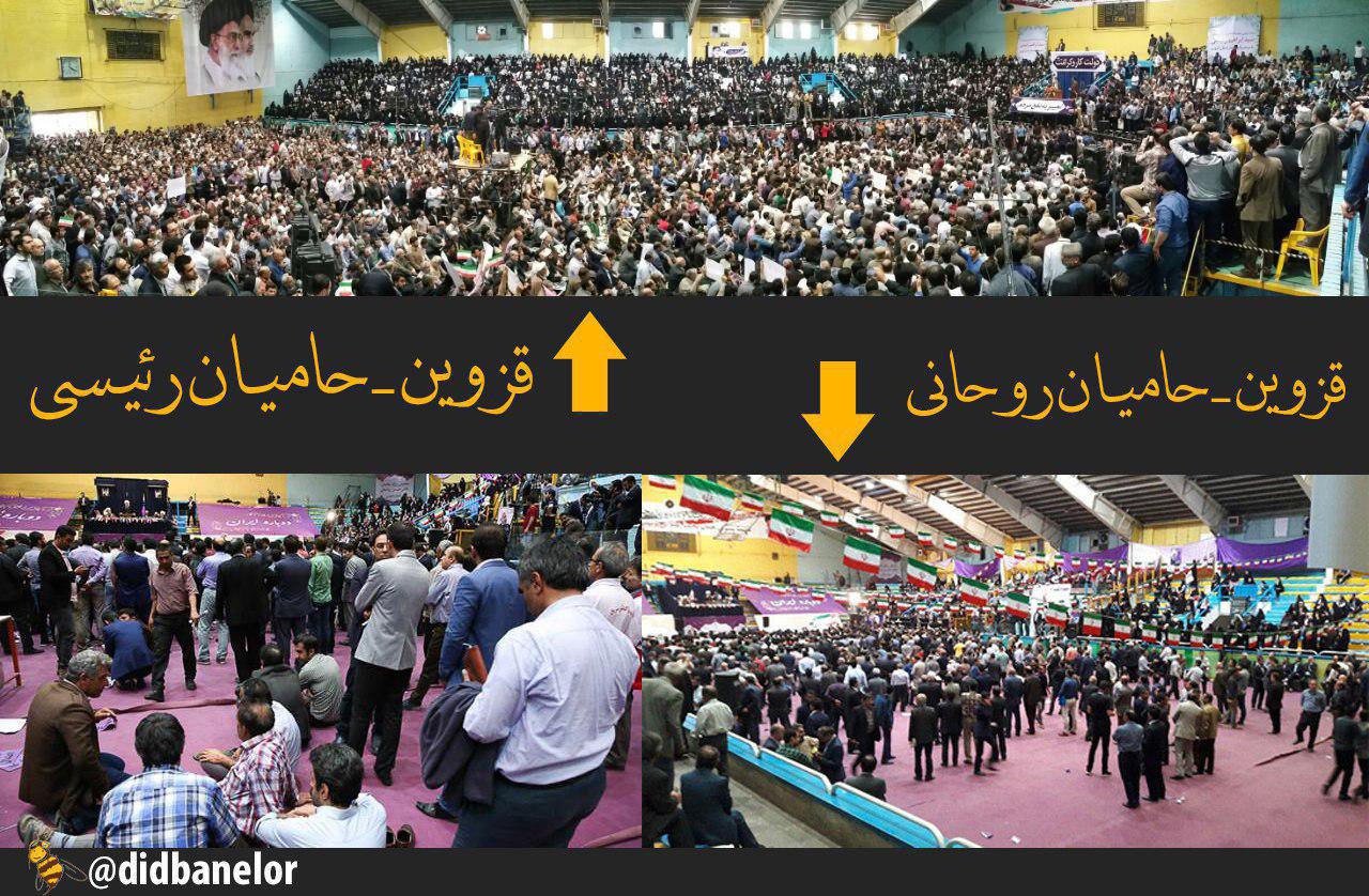 همانگونه که از تصاویر بالا مشخص است استقبال مردم قزوین در تبلیغات انتخاباتی به شدت ضعیف بوده است و با وجود اینکه خواهران و برادران هر دو در سالن حضور دارند اما حسن روحانی در شرایطی سخنرانی خود را اغاز کرده است که نیمه سالن همچنان خالی بوده است.