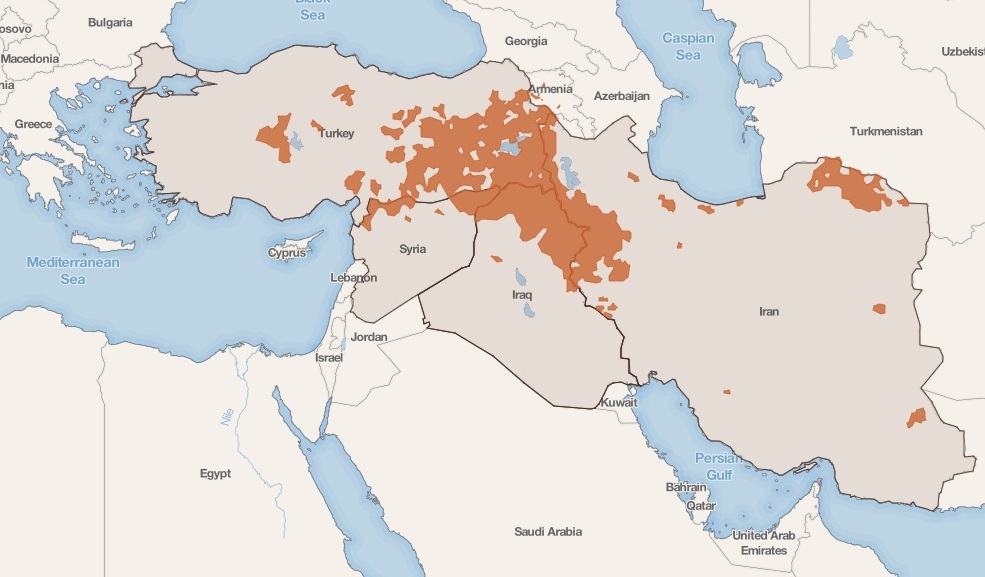 چهار کشور ایران، عراق و سوریه و ترکیه، محل اصلی سکونت کردها هستند.